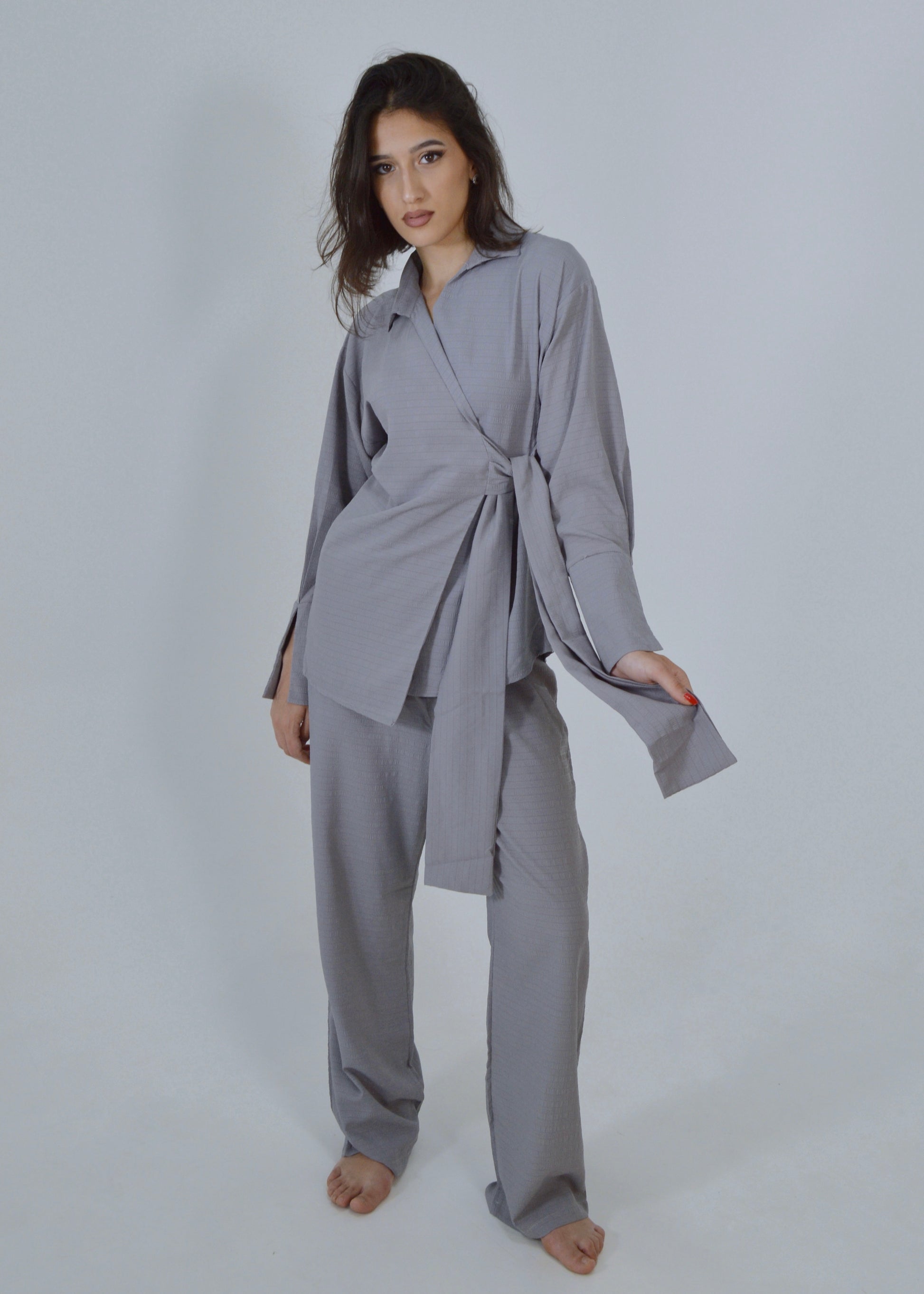 Minimalista y atemporal, este conjunto en tono gris es la combinación perfecta de estilo y practicidad. Diseñado en dos piezas, ofrece un ajuste cómodo y una silueta moderna que se adapta a múltiples ocasiones.